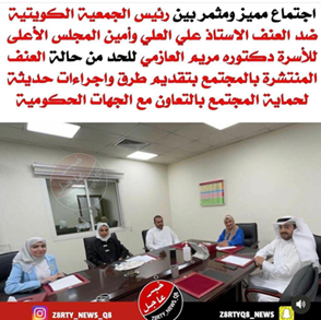 عُقد اجتماع مميز ومثمر بين رئيس الجمعية الكويتية ضد العنف الأستاذ علي محمد العلي، وأمين المجلس الأعلى للأسرة الدكتورة مريم العازمي، لبحث سُبل الحد من انتشار العنف في المجتمع، وتقديم آليات حديثة وإجراءات وقائية تساهم في حماية الأفراد وتعزيز الأمن الاجتماعي. وأكد الجانبان أهمية التنسيق والتعاون مع الجهات الحكومية المختصة لتطبيق الحلول المقترحة على أرض الواقع، بما يضمن مواجهة السلوكيات السلبية، وترسيخ بيئة قائمة على التسامح والاستقرار الأسري.
