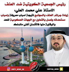 صرّح رئيس الجمعية الكويتية ضد العنف الأستاذ علي محمد العلي بأن ارتفاع معدلات جرائم العنف في المجتمع بات مؤشراً خطيراً يعود إلى أسباب اجتماعية معروفة، إضافة إلى أسباب مستحدثة تستهدف فئة الشباب بشكل مباشر. وأشار إلى أن الجمعية تعمل بالتعاون والتنسيق مع الجهات الحكومية والأمنية ومؤسسات المجتمع المدني لوضع برامج وقائية وتوعوية للحد من هذه الظاهرة، مؤكداً أن الإنسان هو أثمن ما نملك، وأن حماية المجتمع مسؤولية مشتركة تتطلب إجراءات حازمة وتوعية مستمرة.